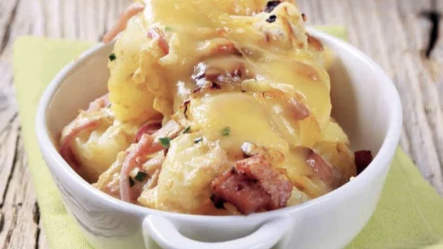 Patate con pancetta, cotto e Fontina