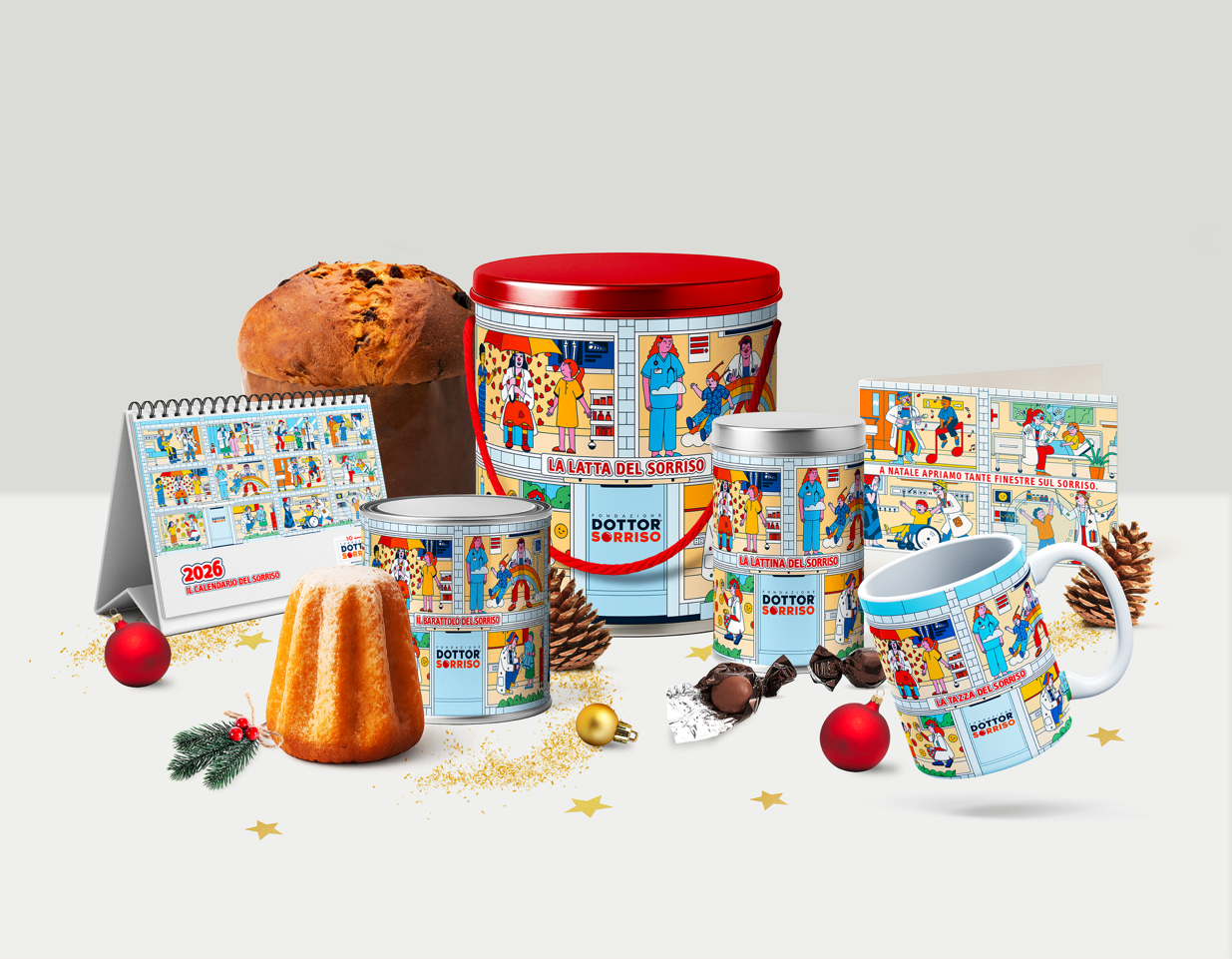 Per il Natale 2025 l’ente lancia una nuova linea di prodotti solidali racchiusa in latte illustrate collezionabili. Queste sono pensate per diventare veri e propri oggetti da custodire nel tempo. Le confezioni, realizzate in metallo resistente, presentano decorazioni con illustrazioni originali del visual artist Nicola Laurora, in arte Nico18. L’artista ha trasformato l’immaginario dei Dottori in piccole storie a colori capaci di evocare l’incontro tra clown e degenti nei reparti.